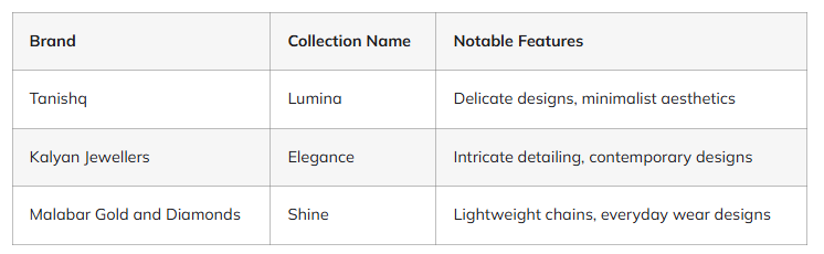 बड़े आभूषण ब्रांड अब हल्के आभूषणों के लिए विशेष श्रृंखलाएँ बना रहे हैं. उदाहरण के लिए, तनिष्क ने सरल लेकिन सुरुचिपूर्ण आभूषण बनाना शुरू कर दिया है. कल्याण ज्वैलर्स के पास भी हल्के और ट्रेंडी नई रेंज हैं.