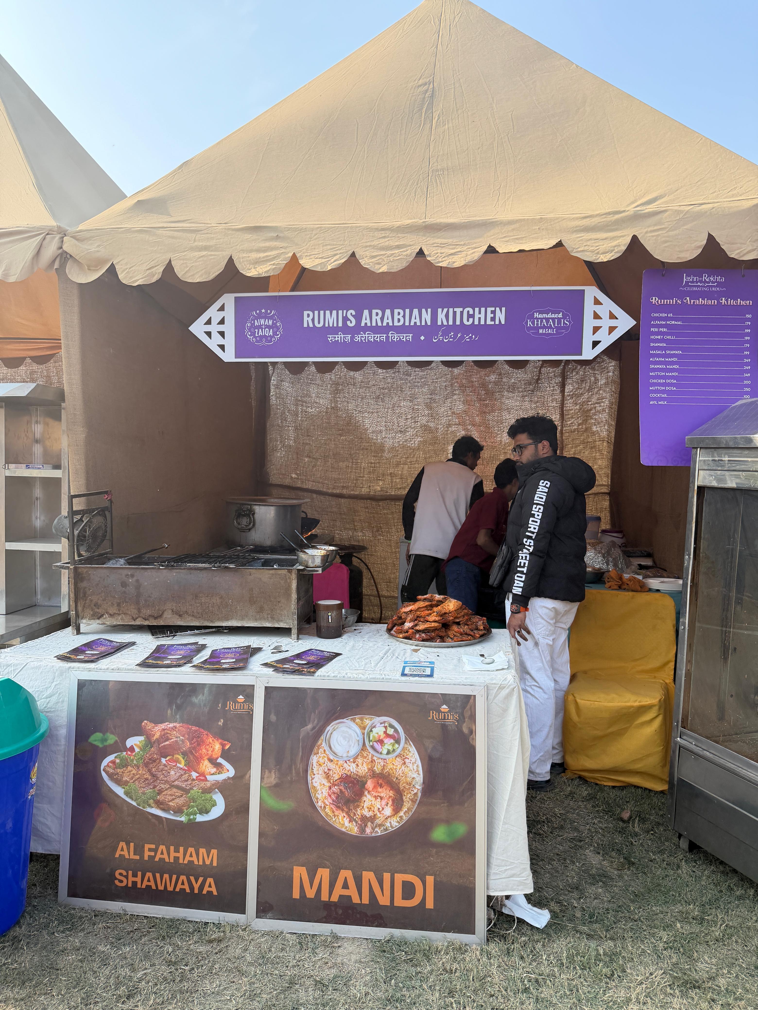 ● साथ ही मंडी, शावरमा और मसालों का हल्का-फुल्का अरबी स्पर्श इस स्टॉल को बेहद लोकप्रिय बनाता है।