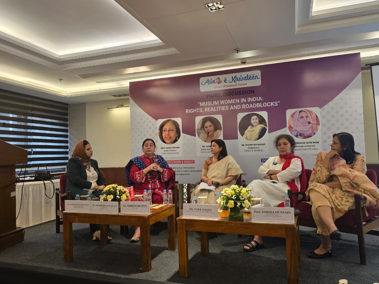 कार्यक्रम में वरिष्ठ पत्रकार सबा नक़वी, इंडियन सोशल इंस्टीट्यूट की प्रो. सबीहा हुसैन, CRDDP और AICWETE की चेयरपर्सन डॉ. शबिस्तां गफ्फार और सुप्रीम कोर्ट की एडवोकेट-ऑन-रिकॉर्ड फिरदौस कुतुब वानी ने अपने विचार साझा किए। सभी वक्ताओं ने अपने अनुभवों और अध्ययन के आधार पर मुस्लिम महिलाओं के अधिकार, संसाधनों की कमी, सामाजिक बाधाओं और संभावनाओं पर विस्तार से चर्चा की।